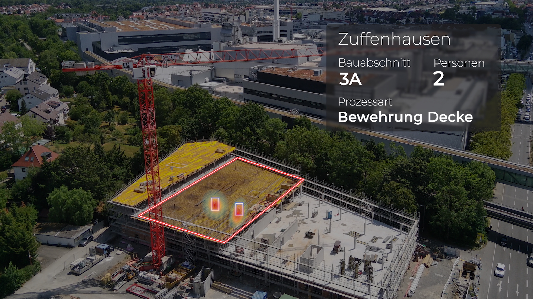 This is exactly where oculai comes in. Crane cameras were installed on Gottlob Rommel's construction sites to provide a bird's eye view of the construction process. In the background, an AI automatically evaluates all relevant process steps - without any additional work for the site manager.